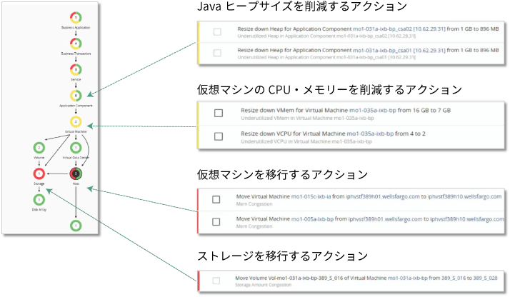 | VMware仮想化基盤を利用 | 利用状況データを分析して、適切なVMサイズを選択し更にリソースを集約 |